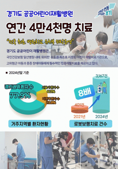 ±¹¹Î°Ç°º¸Çè Àϻ꺴¿ø ³»¿¡ ¸¶·ÃµÈ °æ±âµµ °ø°ø¾î¸°ÀÌÀçȰº´¿øÀº ¼öµµ±Ç ÃÖÃÊ·Î ÁöÁ¤µÈ ¾î¸°ÀÌ ÀçȰÀÇ·á±â°üÀ¸·Î, °íÀ§Ç豺 ¾Æµ¿°ú ÁßÁõ Àå¾Ö¾Æµ¿¿¡°Ô ÇʼöÀûÀÎ ÁýÁßÀçȰġ·á¸¦ Á¦°øÇϰí ÀÖ´Ù. ƯÈ÷ Áö¿ª»çȸ ±â¹Ý ¾î¸°ÀÌ ÀçȰÀÇ·áü°è¸¦ ±¸ÃàÇØ, ¾Æµ¿°ú °¡Á·ÀÌ °ÅÁÖÁö¿¡¼ ´ÜÀý ¾ø´Â ÀçȰġ·á¸¦ ¹ÞÀ» ¼ö ÀÖ´Â ±â¹ÝÀ» ¸¶·ÃÇß´Ù.