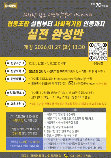 [NWS¹æ¼Û=ÇãÀº¼ ±âÀÚ]±èÆ÷½Ã°¡ »çȸ¹®Á¦ ÇØ°áÀ» À§ÇÑ Âü½ÅÇÑ ¾ÆÀ̵ð¾î¿Í ½ÇÇà·ÂÀ» °®Ãá »çȸÀû°æÁ¦±â¾÷ À°¼ºÀ» À§ÇØ '2026³â ±èÆ÷½Ã »çȸÀû°æÁ¦ ¾ÆÄ«µ¥¹Ì'¸¦ °³¼³Çϰí, ¿À´Â 1¿ù 23ÀϱîÁö ¼ö°»ýÀ» ¸ðÁýÇÑ´Ù.