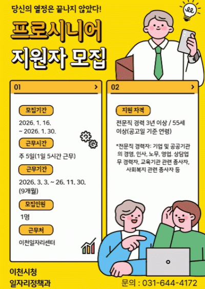 À̹ø ¸ðÁýÀº dzºÎÇÑ ÇöÀå °æÇè°ú Àü¹®¼ºÀ» °®Ãá ÁßÀå³â ÀηÂÀ» Ȱ¿ëÇØ Áö¿ª ³» ÀÏÀÚ¸® ¹ß±¼°ú Ãë¾÷ ¿¬°è¸¦ °ÈÇϱâ À§ÇÑ °ÍÀ¸·Î, ¼±¹ßµÈ »ç¶÷Àº 2026³â 3¿ù 3ÀϺÎÅÍ 11¿ù 30ÀϱîÁö ÀÌõÀÏÀÚ¸®¼¾ÅÍ¿¡¼ ±Ù¹«ÇÏ°Ô µÈ´Ù.