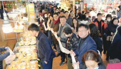 ¸ø°ñÁ¾ÇÕ½ÃÀå ÀÔ±¸¿¡¼ Ãⱸ±îÁö 180m ±æÀÌÀÇ °¡·¡¶±À» ²÷Áö ¾Ê°í »Ì´Â À̺¥Æ®°¡ ¿·È´Ù. ½Ã¹ÎµéÀº ±æ°Ô ´Ã¾î¼ º»ÀÎÀÌ ÀâÀº ¸¸ÅÀÇ °¡·¡¶±À» ³ª´©¸ç »õÇØÀÇ º¹°ú °Ç°À» ±â¿øÇß´Ù.