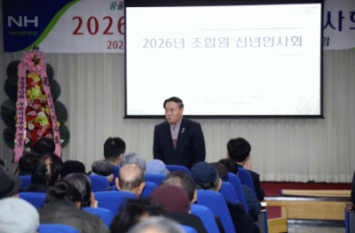 À̳¯ ½Å³âÀλçȸ¿¡´Â ¼ö¿ø³óÇù Á¶ÇÕÀåÀ» ºñ·ÔÇØ Á¶ÇÕ¿ø°ú ³»ºó µî ¾à 400¸íÀÌ Âü¼®ÇÑ °¡¿îµ¥, 2025³âµµ ÁÖ¿ä »ç¾÷ ¼º°ú °øÀ¯¿Í 2026³âµµ »ç¾÷°èȹ ¾È³»°¡ ÇÔ²² ÁøÇàµÆ´Ù.