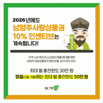 ÁÖ±¤´ö ³²¾çÁÖ½ÃÀåÀº ¡°°í¹°°¡·Î ¾î·Á¿î ½Ã±â¿¡ ³²¾çÁÖ»ç¶û»óǰ±ÇÀº ¼Ò»ó°øÀÎÀ» »ì¸®°í ½Ã¹ÎÀÇ Àå¹Ù±¸´Ï ºÎ´ãÀ» ´ú¾îÁÖ´Â Áö¿ª°æÁ¦ÀÇ Çٽɡ±À̶ó¸ç ¡°¾ÕÀ¸·Îµµ ¿¬Áß ³»³» Áö¿ø°ú 10% Àμ¾Æ¼ºê Á¤Ã¥À» ÅëÇØ ½Ã¹ÎÀÇ ÀÏ»ó¿¡ ÈûÀÌ µÇ°í ¼Ò»ó°øÀÎ ¸ÅÃâ Áõ´ë¸¦ µµ¿Í Áö¿ª°æÁ¦¿¡ Ȱ·ÂÀ» ºÒ¾î³ÖÀ» ¼ö ÀÖµµ·Ï ÃÖ¼±À» ´ÙÇϰڴ١±°í ¹àÇû´Ù.