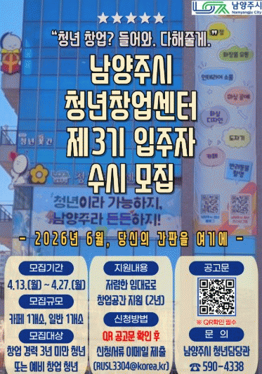 ¸ðÁý ´ë»óÀº °ø°íÀÏ ±âÁØ ³²¾çÁֽÿ¡ °ÅÁÖÇϰųª »ç¾÷ÀåÀ» µÎ°í Ȱµ¿ÇϰíÀÚ ÇÏ´Â ¸¸ 19¼¼ºÎÅÍ 39¼¼±îÁöÀÇ Ã»³âÀ¸·Î, â¾÷ 3³â ¹Ì¸¸ÀÇ Ãʱâ â¾÷ÀÚ ¶Ç´Â ¿¹ºñ â¾÷ÀÚ¶ó¸é ½ÅûÇÒ ¼ö ÀÖ´Ù.