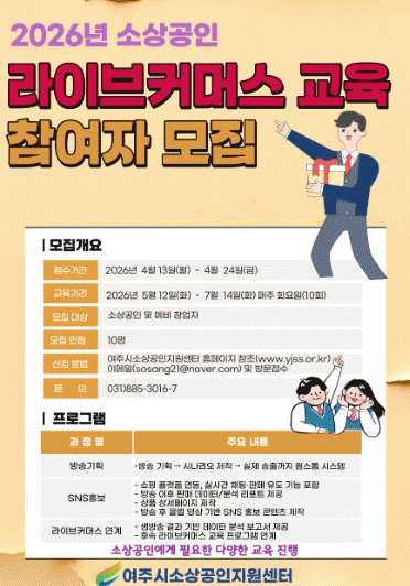[NWS¹æ¼Û=ÇãÀº¼ ±âÀÚ]¿©Áֽüһó°øÀÎÁö¿ø¼¾ÅÍ´Â °ü³» ¼Ò»ó°øÀÎ ¹× ¿¹ºñâ¾÷ÀÚÀÇ ¿Â¶óÀÎ ÆÇ·Î È®´ë¿Í ¸ÅÃâ Áõ´ë¸¦ Áö¿øÇϱâ À§ÇØ ¡®¶óÀ̺êÄ¿¸Ó½º Âü¿©¾÷ü¡¯¸¦ ¸ðÁýÇÑ´Ù°í ¹àÇû´Ù.