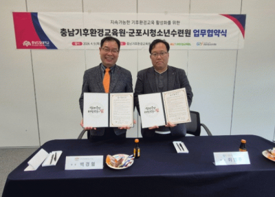 [NWS¹æ¼Û=Çѽ¸ñ ±âÀÚ](Àç)±ºÆ÷½Ãû¼Ò³âÀç´ÜÀÌ ¿î¿µÇÏ´Â ±ºÆ÷½Ãû¼Ò³â¼ö·Ã¿ø(Ãæ³² û¾ç)°ú Ãæ³²±âÈÄȯ°æ±³À°¿ø(Ãæ³² û¾ç)Àº 4¿ù 9ÀÏ, ¹Ì·¡¼¼´ëÀÇ Áö¼Ó°¡´É ±âÈÄȯ°æ±³À° Ȱ¼ºÈ¸¦ À§ÇÑ ¾÷¹«Çù¾àÀ» ü°áÇß´Ù°í ÀüÇß´Ù.