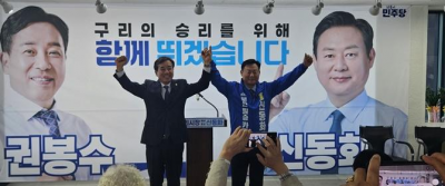 (NWS¹æ¼Û=Çѽ¸ñ ±âÀÚ)14ÀÏ ¿ÀÈÄ2½Ã ±¸¸®½Ã ´õºÒ¾î¹ÎÁÖ´ç ½Åµ¿È ¼±°Å»ç¹«¼Ò¿¡¼ ½Åµ¿È¿Í ±ÇºÀ¼ö´Â ±¸¸®ÀÇ ´õ Å« º¯È¿Í ´õ È®½ÇÇÑ ½Â¸®¸¦ À§ÇØ ±¸¸®½ÃÀå °æ¼±°úÁ¤¿¡ ÈûÀ» ÇÕÇϱâ·Î °øµ¿ ¼±¾ð¹®À» ¹ßÇ¥ Çß´Ù