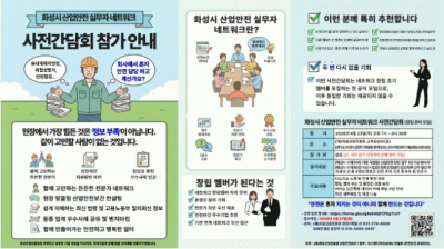 ¡®È¼º½Ã »ê¾÷¾ÈÀü ½Ç¹«ÀÚ ³×Æ®¿öÅ©¡¯´Â ȼº½Ã ÃÖÃÊÀÇ Á¦Á¶¾÷ ¾ÈÀüº¸°Ç Ä¿¹Â´ÏƼ·Î, »ê¾÷¾ÈÀü ½Ç¹«ÀÚµéÀÌ ÀÚ¹ßÀûÀ¸·Î Âü¿©ÇØ Áö¼ÓÀûÀÎ Á¤º¸ ±³·ù¿Í ÇöÀå Á᫐ ¿ª·® °È¸¦ µµ¸ðÇÑ´Ù. ÁøÈï¿øÀº Àü¹®°¡ Ư°°ú ¾ÈÀü°ü¸® ¿ì¼ö»ç·Ê ¹ßÇ¥ µîÀ» Áö¿øÇÒ °èȹÀÌ´Ù.